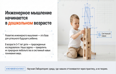 • Инновационные лаборатории: работа с «Лабораторией звука», театром теней, песочная терапия и проектирование игр-бродилок, которые позволяют ребенку прикоснуться к науке уже в 5–6 лет.